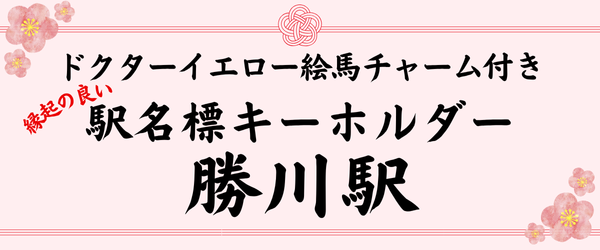 ドクターイエロー絵馬チャーム付き 縁起の良い駅名標キーホルダー【勝川駅】